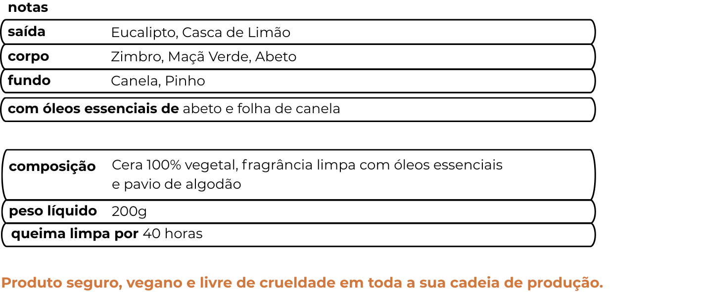 Uma fragrância que combina notas amadeiradas, ervas e frutas verdes com o frescor dos pinheiros.